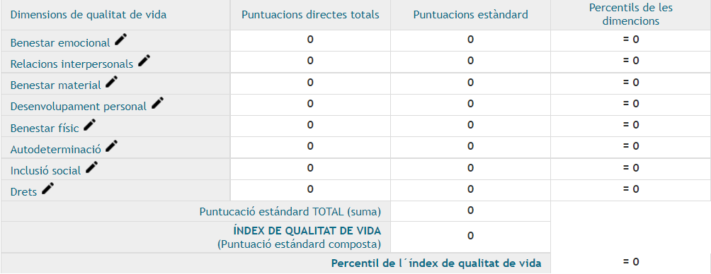 , i ens apareixeran automàticament les totes les dimensions de l’escala de qualitat de vida.