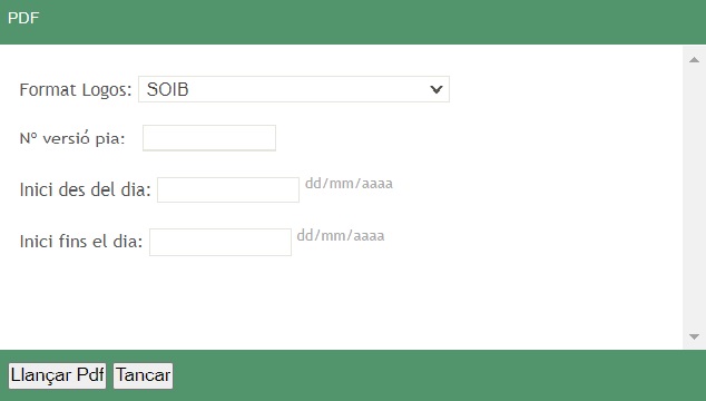 Indicam també quin número de versió de plà de treball és. Finalment seleccionem les dates de pla de treball que ens interessa imprimir, emplenant els camps “Inici des del dia” i “Inici fins el dia”. Aquesta opció servei per imprimir els Plà de treball compresos en un període de temps concret.