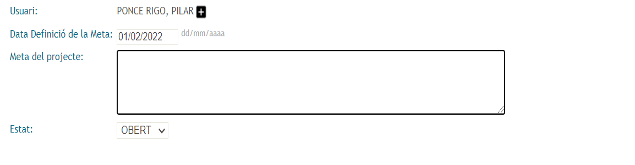 Cliquem sobre Nou Projecte i redactem la meta del projecte de vida de la persona participant i cliquem damunt “Guardar”.