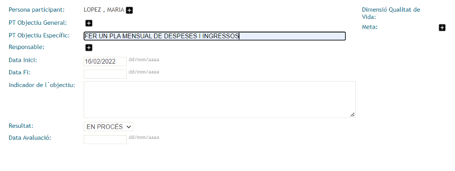 Es important saber que quan cliquem damunt Responsable de l’objectiu, es fa referència a la persona referent del servei al qual la persona pertany.