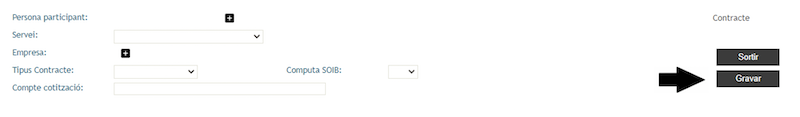 Una vegada finalitzada l’entrada de tota la informació sobre la situació contractual, ho guardarem fent clic a la opció ‘Gravar’ de la part dreta superior de la pantalla: