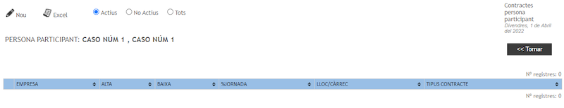Quan hem entrat a la ‘Contractes’, podrem veure els contractes que la persona té ja introduïts (podent seleccionar el total