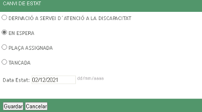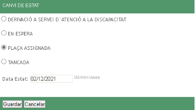 Seleccionem l’opció de “Derivació a Servei d’atenció a la discapacitat” i guardem.