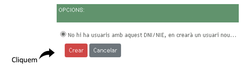 Si la persona no ha estat mai a l’entitat, la BdD ens indicarà que no hi ha cap registre amb aquest DNI/NIE i que hem de crear una persona nova.
