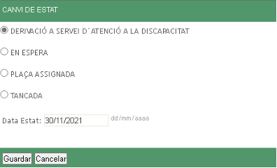 [13] Servei concertat: en aquest cas es realitzarà la sol·licitud a l’organisme concertant, quedant la demanda en estat de “DERIVACIÓ A SERVEI D’ATENCIÓ A LA DISCAPACITAT”