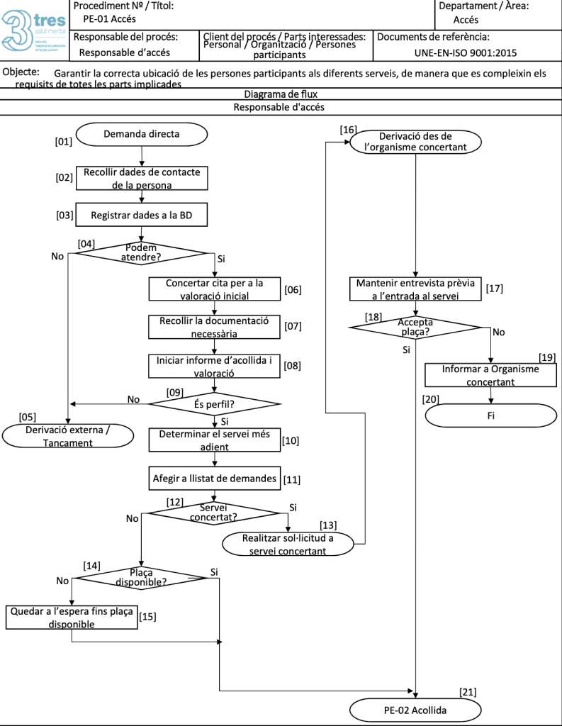 01] El procediment d’accés s’inicia amb l’arribada d’una persona a l’entitat. Aquesta, pot produir-se per dues vies: